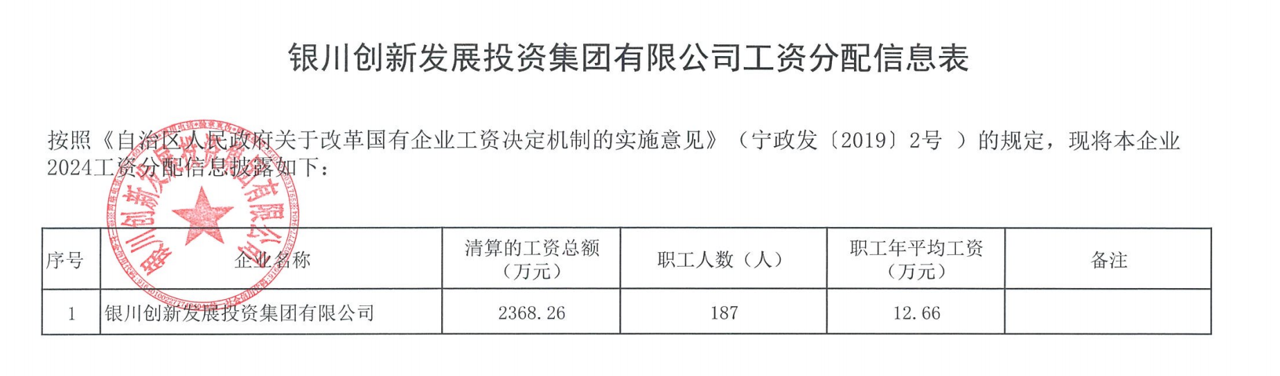 銀川創(chuàng)新發(fā)展投資集團(tuán)有限公司工資分配信息表